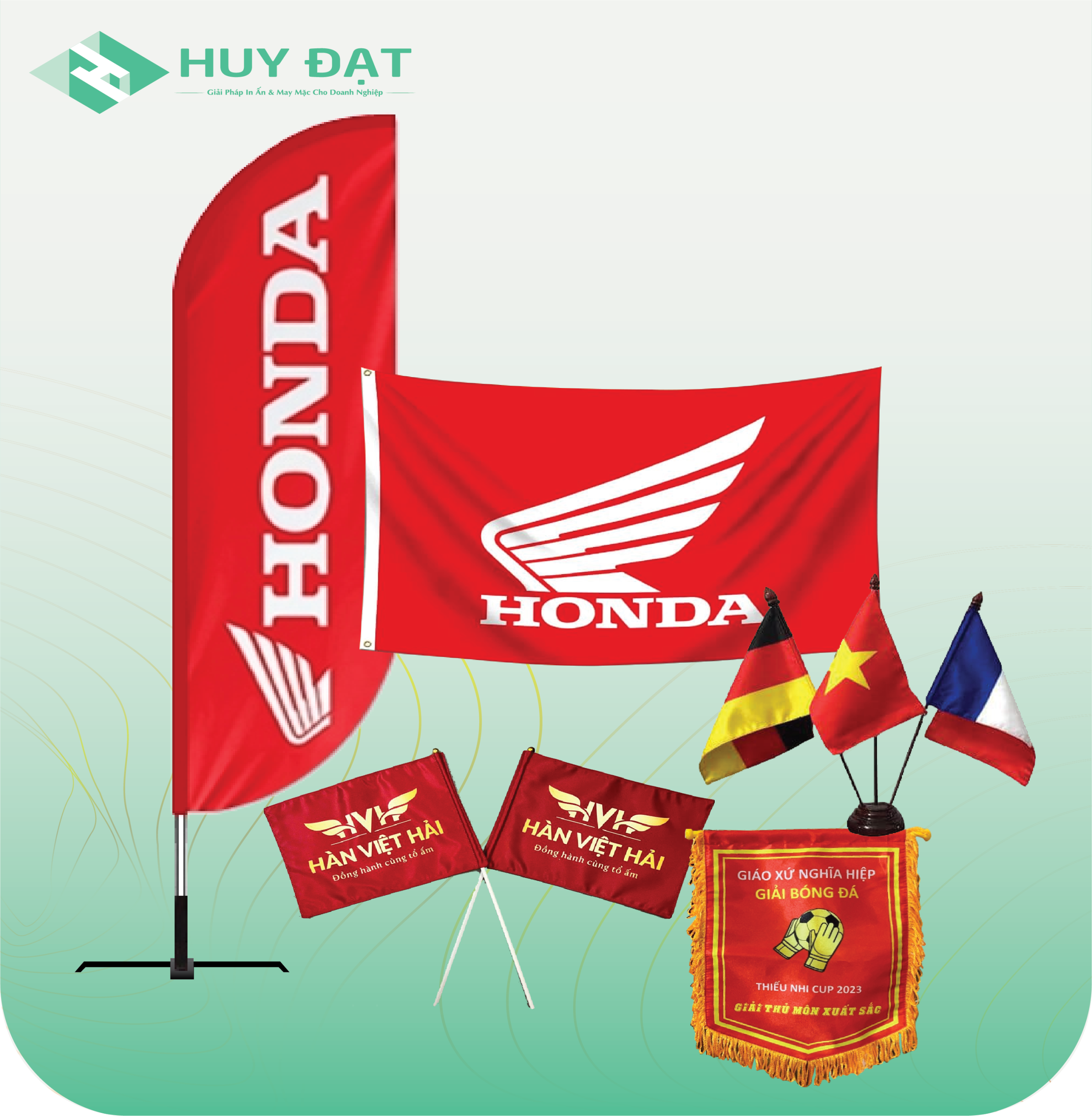 Huy Đạt có nhiều năm hoạt động trong ngành in cờ, đảm bảo mang đến sản phẩm chất lượng và dịch vụ chuyên nghiệp. - Mẫu mã đa dạng: